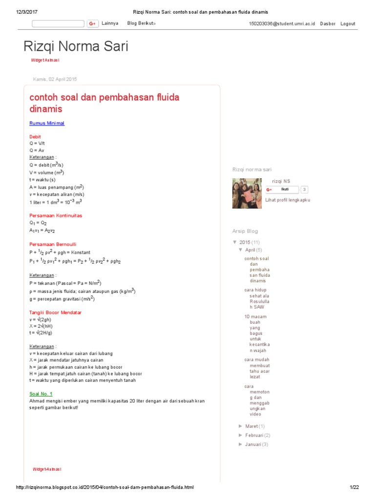 Gas yang keluar dari ujung selang itu mendorong sebuah balok yang diletakkan pada lantai yang licin. Download rangkuman contoh soal fluida dinamis dalam bentuk pdf klik disini.
