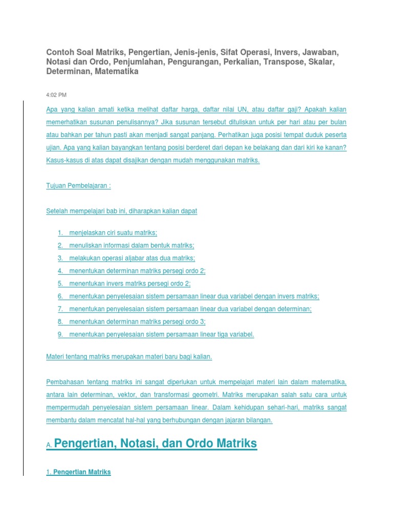 Rumus Matriks Matematika Sma