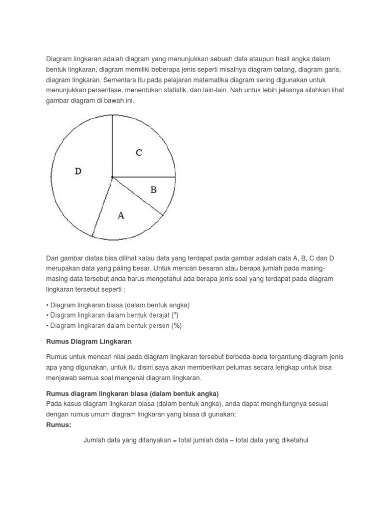 Pada kesempatan ini saya akan memberikan informasi untuk menghitung diagram lingkaran rumus contoh soal rumus lingkaran biasa dalam angka dan rumus diagram derajat diagram dalam persentase teori perbandingan dan elemen lainnya. Contoh soal bagian diagram lingkaran beserta pembahasan dalam pelajaran matematika terdapat materi mengenai diagramtentunya anda sudah menjumpai contoh soal bagian diagram bukan. Diagram merupakan grafik yang digambar dengan disertai keterangan maupun penjelasan tentang prosedur kegiatan maupun sarana yang biasanya dijalankan. Rumus diagram lingkaran dalam pelajaran matematika kita sering mendengar atau mengerjakan diagram lingkaran memang sebagian orang menganggap diagram lingkaran ini cukup sulit dikerjakan namun jika anda tahu bagaimana tips serta rumusnya maka tidak akan mengalami kesulitan. Diagram lingkaran adalah sebuah diagram yang berfungsi untuk menampilkan sebuah hasil data atau hasil angka yang digambarkan kedalam bentuk lingkaran. Sehingga para sahabat bisa mengerti dan memahami soal diagram lingkaran yang kami posting.