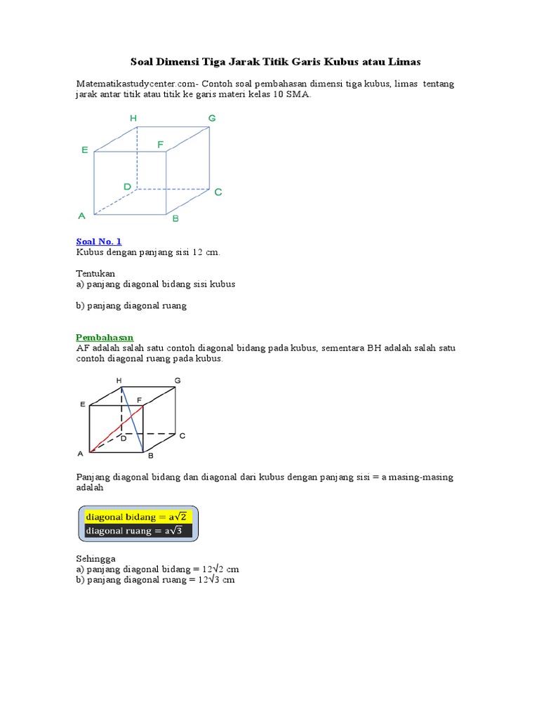 Heyhey kamu kelas xii yang baru naik tingkat. Di susun oleh. 1 kubus dengan panjang sisi 12 cm. Contoh soal dimensi tiga konsep jarak. Rangkuman contoh soal dimensi tiga jawaban pembahasannya. Ilhamsyah ibnu hidayat kumpulan soal soal matriks.