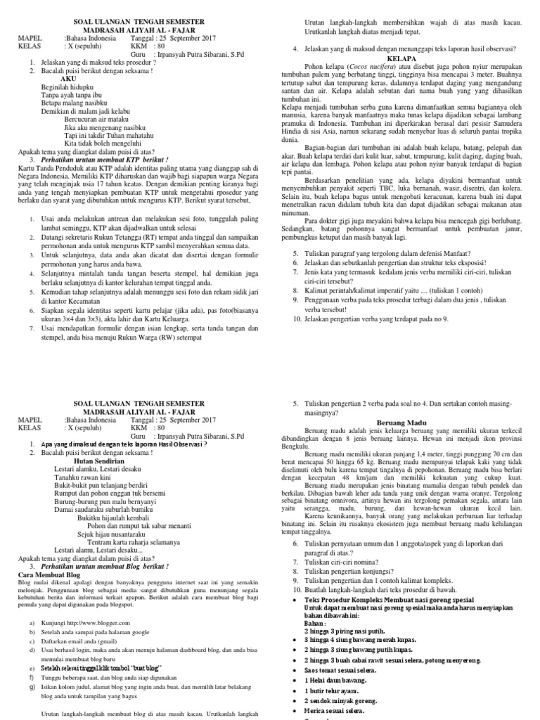 Contoh soal informasi rinci how can people be powerful to earn money online. Namanya adalah kue serabi kinca yaitu sejenis camilan serabi berwarna hijau muda karena telah diberi pewarna hijau dan aroma wangi daun pandan. Pilihan pilihan lain salah karena tidak termasuk dalam prosedur yang disajikan pada teks. Melanjutkan tulisan contoh soal essay bahasa indonesia k13 kelas xi semester 1 beserta jawaban bagian pertama soal nomor 1 20 bagian kedua dimulai dari soal nomor 21. Ada sekitar 50 butir soal pgpilihan ganda bahasa indonesia tentang teks prosedur kelas 12117 dan jawabannya yang bisa adik adik smpsmasmkma jadikan referensi dalam menghadapi ujian dari guru. Jika ada soal yang memang tidak bisa kita kerjakan atau susah untuk kita kerjakan itu berarti kita belum begitu memahami mengenai materi ini.