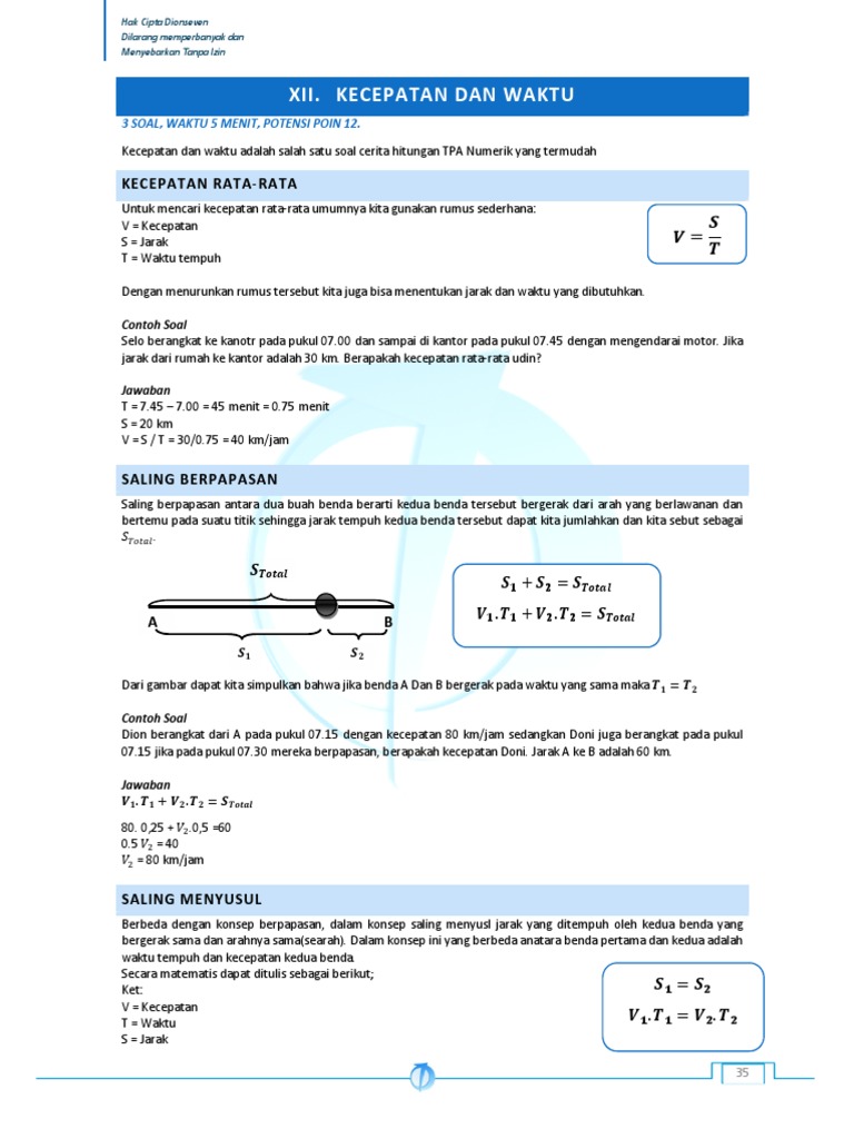 Modul Rumus Amp Soal Kecepatan Amp Kelajuan Wardaya College