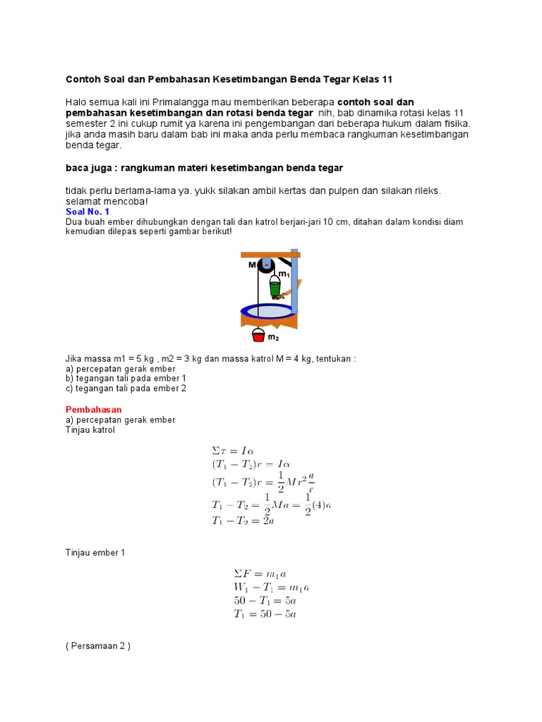Dua benda bermassa m 1 dan m 2 dihubungkan pada katrol tetap di mana benda 1 berada di bidang datar licin sedangkan benda 2 berada dalam posisi menggantung. Contoh soal dan pembahasan kesetimbangan benda tegar farrel studio 4 juni 2017 bank soal fisika leave a comment 13432 views benda tegar adalah istilah yang sering digunakan dalam dunia fisika untuk menyatakan suatu benda yang tidak akan berubah bentuknya setelah diberikan suatu gaya pada benda itu. 30 n dan. Besar tegangan tali t 1 dan t 2 adalah berturut turut adalah. Biar ga bingung kamu juga bisa liat liat di daftar isinya yah. Contoh soal dan pembahasan kesetimbangan benda tegar by jendela ilmu 27 feb 2017 bank soal fisika kelas xi sma benda tegar adalah istilah yang sering digunakan dalam dunia fisika untuk menyatakan suatu benda yang tidak akan berubah bentuknya setelah diberikan suatu gaya pada benda itu.