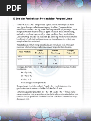 Contoh soal program linear metode grafik halaman ini memuat soal program linear sederhana yang diselesaikan dengan metode grafiktingkat soal program linear yang diberikan di sini sesuai level kognitif aplikasi.