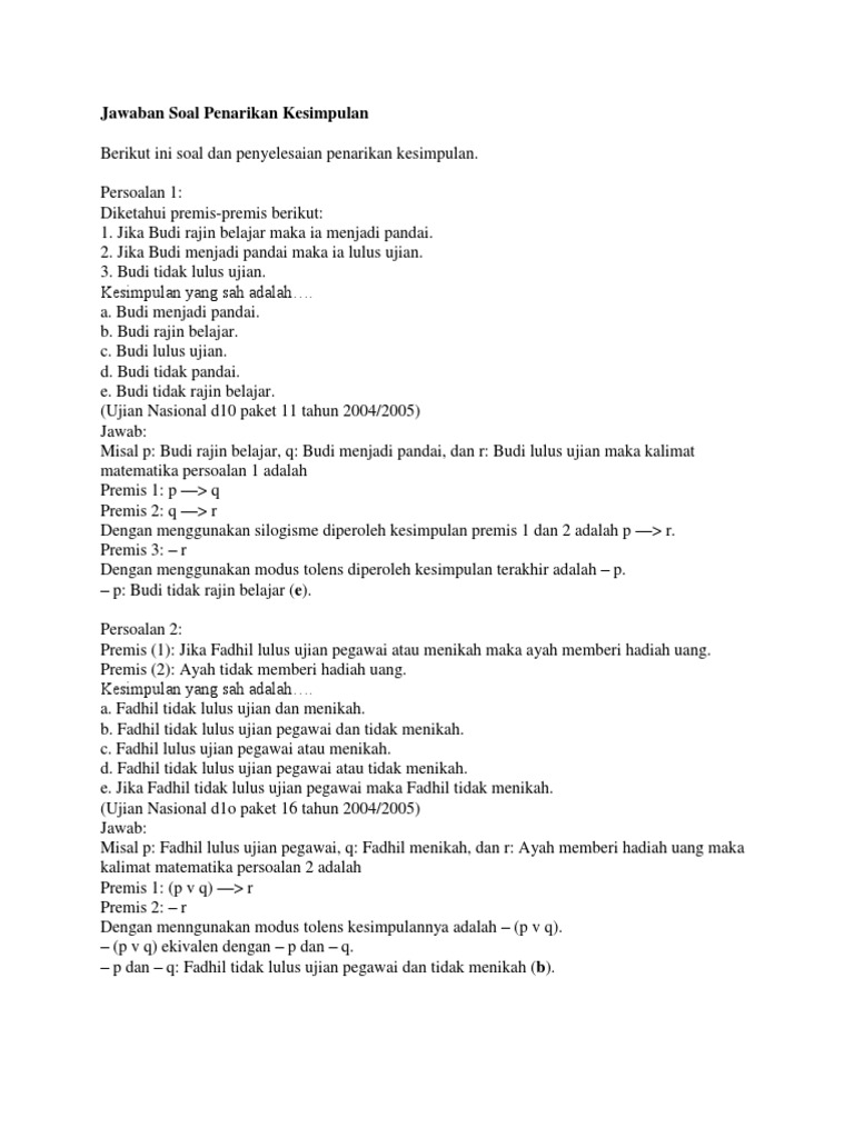 Artikel ini menyajikan kumpulan contoh soal dan pembahasan tentang disjungsi dalam logika matematika lengkap. Konsep dapat dikuasai apabila ssering berlatih. Contoh soal logika matematika logika matematika dipelajari di sma dan selalu masuk dalam kisi kisi ujian nasional. Bagi anda yang membenci dan selalu menghindari makhluk bernama matematika ketika masa sekolah dulu mungkin bisa menjawabnya sendiri. Contoh soal dan pembahasan tentang logika matematika widi friday 2 february 2018 hai hai hai. Download contoh soal psikotes 2019 matematika gambar polri bank karayawan deret angka pdf cpns sma online dan jawabannya beserta pembahasannya lengkap.