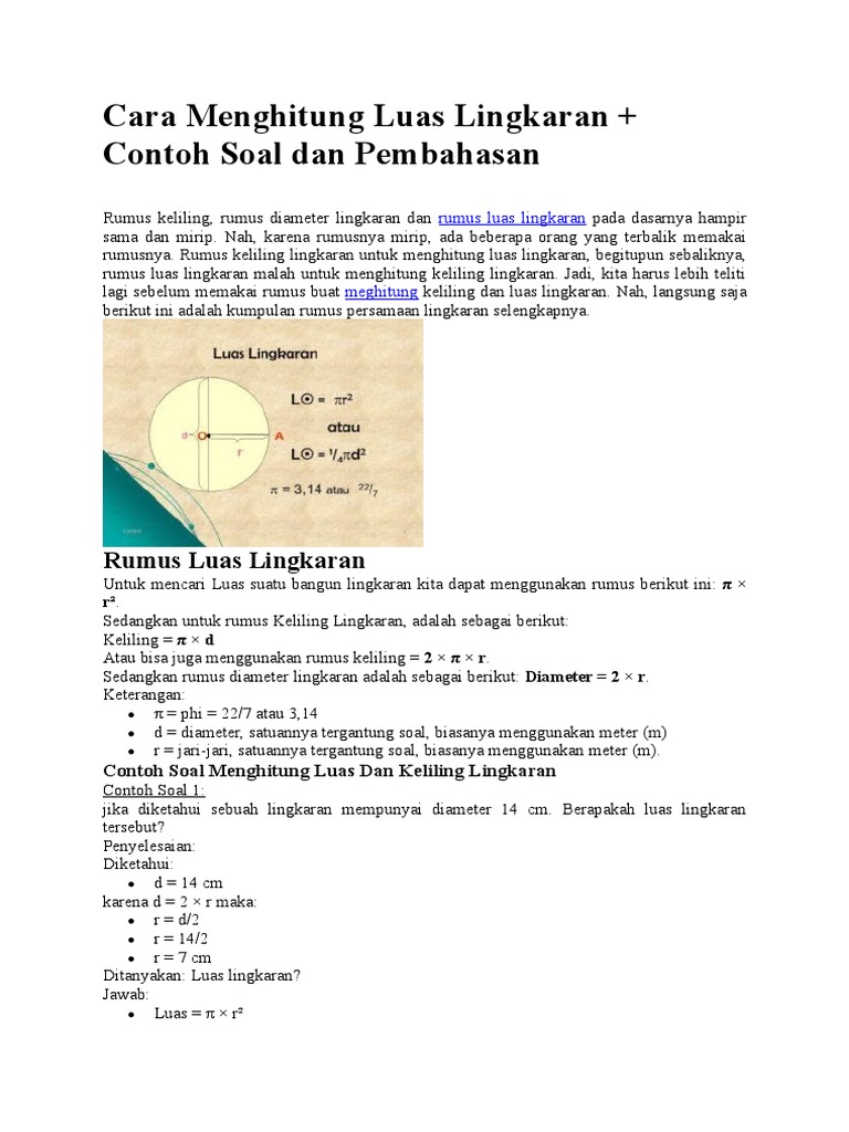Rumus Luas Lingkaran Dan 3 Contoh Soal Terlengkap Ilmusiana