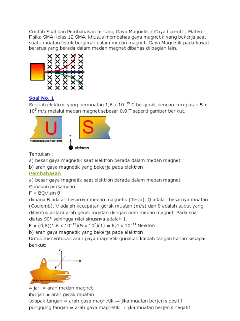 1 10 soal medan magnet dan pembahasan 1. Medan magnet merupakan ruang disekitar magnet yang masih dapat dirasakan adanya gaya magnetnya. Contoh soal magnet dan gaya lorentz ini disusun dalam bentuk pilihan berganda dilengkpai dengan pembahasan dan dirancang berdasarkan beberapa subtopik yang paling sering keluar dalam kajian magnet dan gaya lorentz untuk tingkat menengah pertama. Pada tahun 1820 seorang ilmuwan denmark hans christian oersted 1777 1857 menemukan suatu gejala yang menariksaat jarum kompas diletakkan di sekitar kawat berarus ternyata jarum kompas menyimpang. Loop kawat pada gambar di bawah ini memiliki ukuran 50 cm x 20 cm. Contoh soal induksi magnetik nomor 3 un 2013 sebuah muatan positif bergerak memotong medan magnet homogen secara tegak lurus.