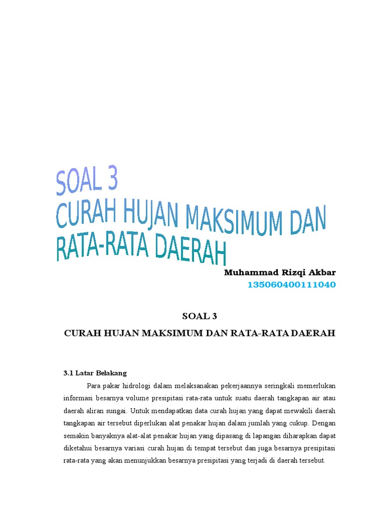 Contoh soal menghitung curah hujan. Contoh cara menghitung debit waktu aliran dan volume aliran. Bentuk umum dari rumus mononobe adalah. Untuk menghitung hujan rencana dengan rumus mononobe harus tersedia data hujan harian. Volume air yang keluar dari sebuah pipa dalam satu menit adalah 12 liter. Curah hujan mm januari. Data curah hujan di kota z.