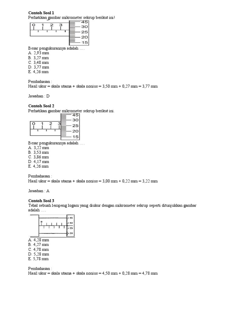 Berikut adalah beberapa contoh soal mikrometer sekrup soal 1. Contoh soal 2 perhatikan gambar mikrometer sekrup berikut ini.