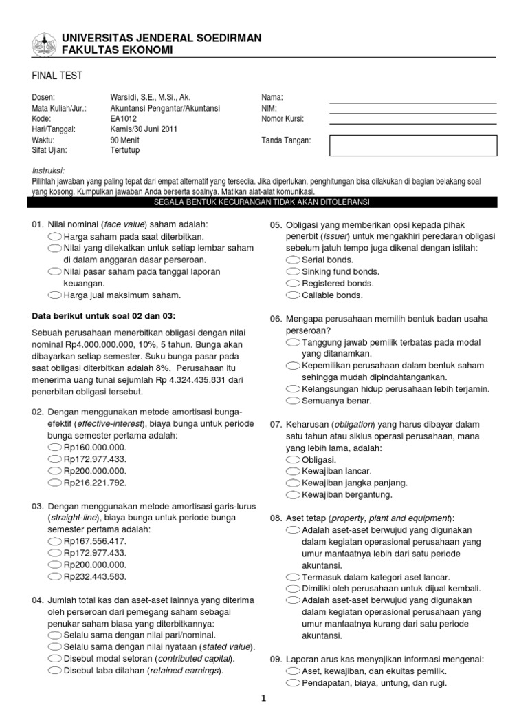 Contoh soal saham dan obligasi beserta jawabannya soal pilihan ganda saham dan obligasi. Departemen agama ri universitas islam negeri sunan kalijaga fakultas syariah latihan soal ujian akhir akuntansi pengantar 2 semester gasal ta. Berikut informasi sepenuhnya tentang contoh soal akuntansi keuangan 2 tentang obligasi. Annie nominal rp 50000 dengan kurs 101 bunga 12 pertahun dibayar tanggal 1 mei dan 1 november. Perhatikan contoh akuntansi untuk investasi obligasi berikut. Berikut saldo rekening investasi pada saham.