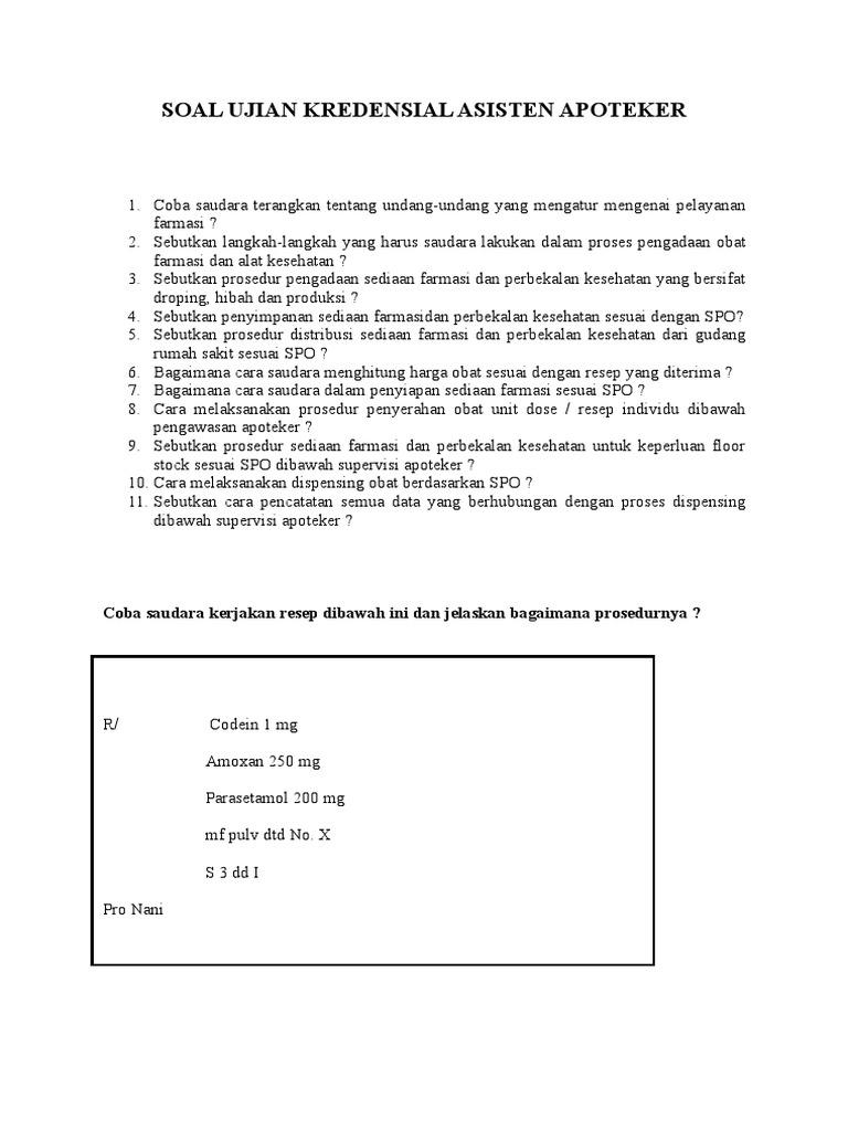Contoh soal osce apoteker. Contoh soal cpns 2018 apoteker dan farmasi ini tersedia juga dengan kunci jabawan dan pembahasannya. Ospe ujian untuk sejawat apoteker di bidang industri distribusi pbf kosmetik obat tradisional jika merasa ragu harus ikut osce atau ospe materi soal ujian berbeda silahkan hubungi nomer cp panitia di bawah. Koleksi contoh soal osce apoteker kumpulan contoh skripsi geodesi home blue print ujian kompetensi apoteker indonesia metode cbt dan osce soal osce comprehensive soal kompre apoteker 2012 2013 sharing osce apoteker 2018 teknis youtube apa yang saya pelajari setelah menjalani ujian apoteker di itb soal try. Kadar kreatinin serum 55 mgl. Contoh soal osce apoteker. Karena dibagian akhir artikel ini sudah kami sediakan link download contoh soal skb cpns apoteker dan farmasi 2018 dan.