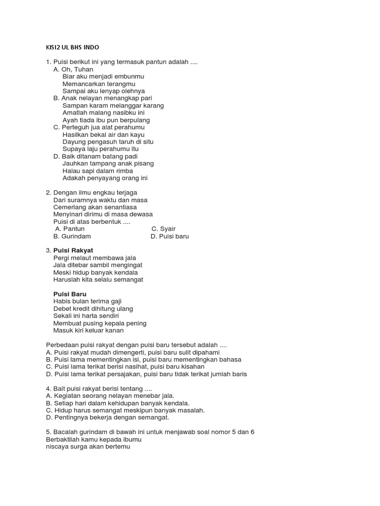 Contoh soal pantun pilihan ganda beserta jawabannya. Contoh soal pantun dan cerita ulang dengan jawabannya. Itulah tadi kumpulan contoh soal cerpen pilihan ganda beserta jawabannya kelas 9. Baik contoh soal lagu bahasa inggris kelas x atau soal song kelas xi pun juga dengan soal pilihan ganda lagu bahasa inggris kelas xii. 5 5 5 votes labbahasainggriscoid artikel hari ini saya akan memberikan beberapa informasi tentang 100 contoh soal simple present tense dan jawabannya yang terdiri dari bentuk soal pilihan ganda dan essay. Mencermati pilihan kata diksi yang tepat dalam teks cerita ulang. Admin dari blog bagikan contoh 2019 juga mengumpulkan gambar gambar lainnya terkait contoh soal degree of comparison pilihan ganda beserta pembahasannya dibawah ini.