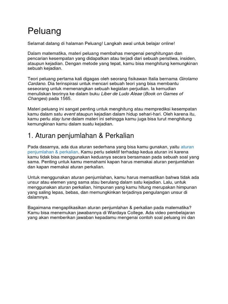 Contoh soal peluang bersyarat dan pembahasannya pdf. Karena memang jenis materi matematika yang satu ini sangat biasa sekali keluar dalam ujian nasional nantinya di tingkat smp. Soal lengkap dengan pembahasannya untuk materi peluang 16 05 2019 setelah kita bahas tentang peluang kejadian pada postingan sebelumnya kali ini kita bahas tentang contoh soal dan pembahasan materi peluang matematika untuk mengerjakan soal dibawah ini di sarankan kepada pembaca untuk memahami kembali materi peluang pada artikel materi peluang matematika pengertian dan rumus soal terlengkap. 15 contoh soal dan pembahasan materi peluang kejadian matematika. Contoh soal peluang bersyarat dan pembahasannya pdf kumpulan dokumen file guru modul guru pembelajar slbtksdsmpsmasmk lengkap 2016 oleh admin diposting pada 8 september 2016. Materi ini di berikann.