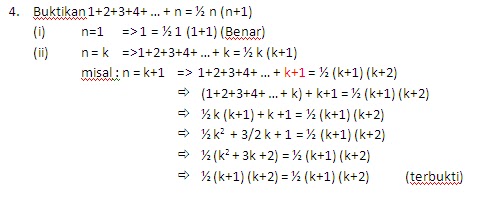 Dimana suatu proses ataupun aktivitas berpikir menarik kesimpulan berdasarkan pada kebenaran pernyataan yang berlaku secara umum hingga pada pernyataan khusus tertentu juga bisa berlaku benar. Coba kita buktikan dengan induksi matematika bahwa rumus sn.
