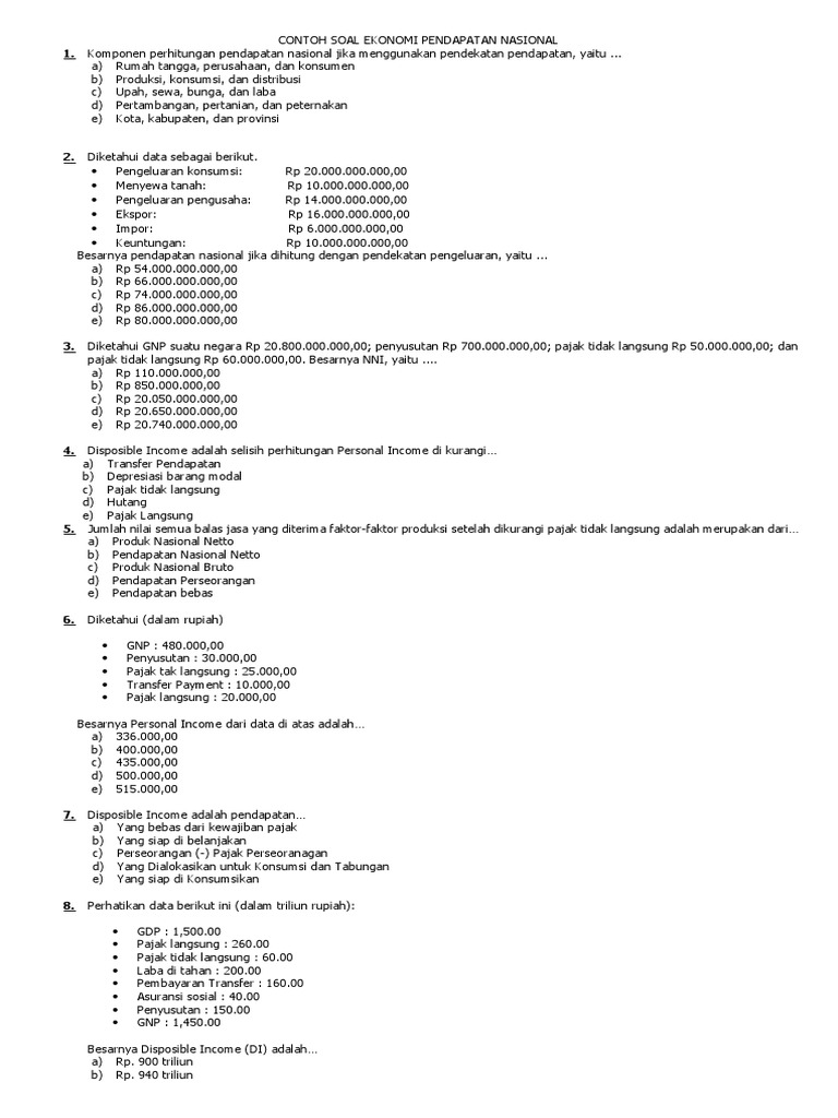 Contoh soal pendapatan nasional. Teman teman setiap hari mungkin mendapatkan uang saku dari orang tua sebagian mungkin juga memperoleh uang dari hasil bekerja paruh waktu atau lainnya uang yang anda peroleh untuk kemudian dibelanjakan dapat disebut sebagai pendapatan pribadi anda. Arinda wita hedila 20 november 2017 2300. Akan tetapi sebelum itu perhatikan pembahasan mengenai pendapatan nasional. Posted in ekonomi tagged carilah data pendapatan per kapita dari negara asean untuk tahun 2012 contoh soal menghitung pendapatan nasional dengan metode produksi contoh soal perhitungan pendapatan nasional contoh soal perhitungan pendapatan nasional menggunakan pendekatan produksi manfaat perhitungan pendapatan nasional menghitung. Contoh soal soal pendapatan nasional pendapatan nasional pendapatan nasional adalah jumlah pendapatan yang diterima oleh seluruh rumah tangga keluarga rtk di suatu negara dari penyerahan faktor faktor produksi dalam satu periode biasanya selama satu tahun. Soal dan jawaban pokok bahasan pendapatan nasional pembaca yang budiman berikut ini.
