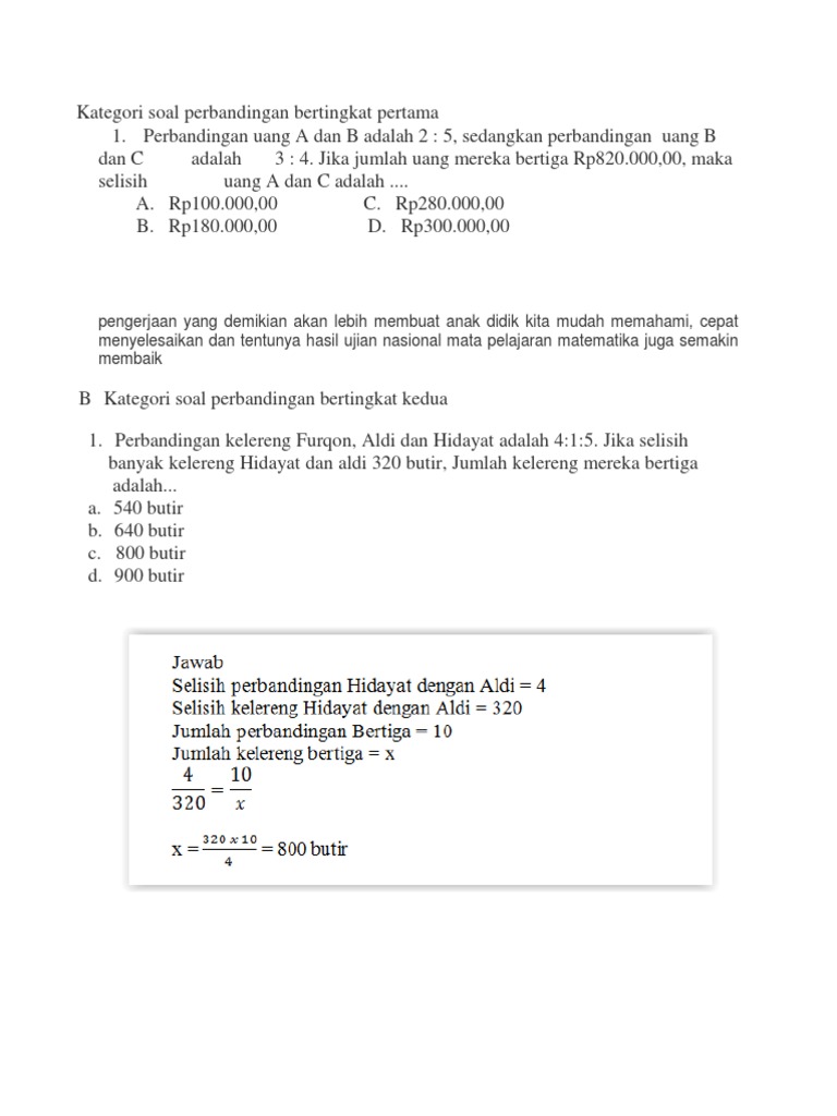 Contoh soal perbandingan selisih. Jumlah perbandingan 3 2 5. Contoh soal perbandingan selisih uang berikut ini adalah kisi kisi soal pretest ppg 2018 yang merupakan kumpulan file dari berbagi sumber kisi kisippg tentang contoh soal perbandingan selisih uang yang bisa bapakibu gunakan dan diunduh secara gratis dengan menekan tombol download biru dibawah ini. Pelajari senilai berbalik nilai bertingkat cara menghitung rumus contoh soal. Soal un matematika smp tahun 2012. Rumus perbandingan memiliki contoh soal perbandingan yang dapat membantu anda dalam menguasai materi ini. Pak guru kalau yg soal no 1 saya cari jawabannya begini kira2 betul atau hanya kebetulan.
