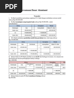 Contoh soal persamaan dasar akuntansi dan laporan keuangan. Contoh soal persamaan dasar akuntansi. Contoh soal persamaan dasar akuntansi pemerintah daerah jurnal laporan keuangan pemerintah daerah dan kunci jawabannyasoal akuntansi yang akan kami sampaikan pada artikel ini yaitu soal mata pelajaran praktikum akuntansi lembaga instansi pemerintah. Dasar hukum dan pelaksanaan akuntansi jenis soal yang ada pada artikel ini ada tiga yaitu soal pilihan ganda soal esai atau uraian dan soal praktik. Jawaban persamaan akuntansi laporan keuangan laba rugi laporan perubahan modal. Dimana dalam pembahasan tersebut anda akan diperkanalkan mengenai sebuah transaksi kemudian bagaimana cara menganalsis hingga melakukan pencatatan kedalam sebuah buku jurnal. Bagian ini kami sajikan contoh soal akuntansi dasar dan umum.