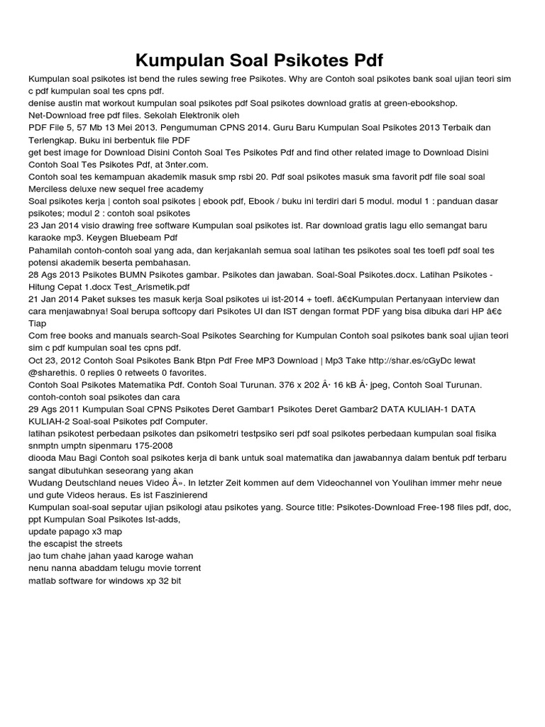 Contoh soal psikotes dan jawabannya pdf. Download lengkap kumpulan contoh soal psikotes dan jawabannya lengkap terbaru doc dan pdf disini. Read more download contoh soal psikotes kerja dan jawabannya pdf soal psikotes jawaban contoh tes psikotespsikologi masuk smasmk smp sd favorit atau kelas unggulan 2020. Download contoh soal psikotes kerja dan jawabannya pdf. Selain perusahaan biasanya untuk masuk perguruan tinggi juga menyertakan soal psikotes atau soal untuk menguji psikologi calon mahasiswanya. Download soal psikotes kerja dan kunci jawabannya pdf. Jadi ketika anda mempelajari contoh soal psikotes kerja dan jawabannya 2015 tetap berguna dan bermanfaat karena isinya hampir sama dengan tahun yang terakhir.