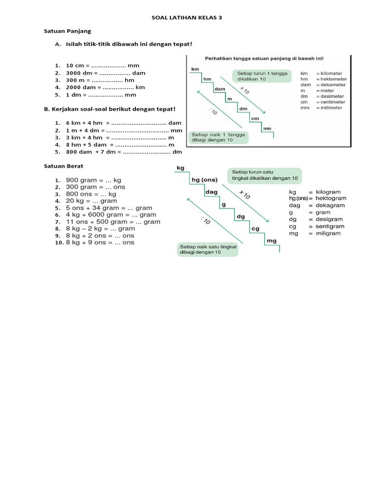 Maka akan dibagi 10 untuk tiap satu tingkatnya. Contoh soal konversi satuan panjang 1. Setiap naik satu tingkat dibagi 10 dan setiap turun satu tingkat dikalikan 10. Konversi dari 30 yard ke kaki jawaban. Berarti untuk menjawabnya tinggal mengalikan dengan angka 3. Pada bagian ini akan dijelaskan beberapa satuan panjang yang sering digunakan.