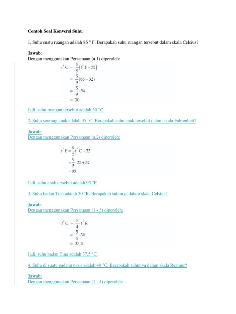 Berikut ini adalah beberapa contoh soal tentang konversi atau pengubahan satuan suhu yang meliputi celcius reamur fahrenheit dan kelvin lengkap dengan pembahasannya.