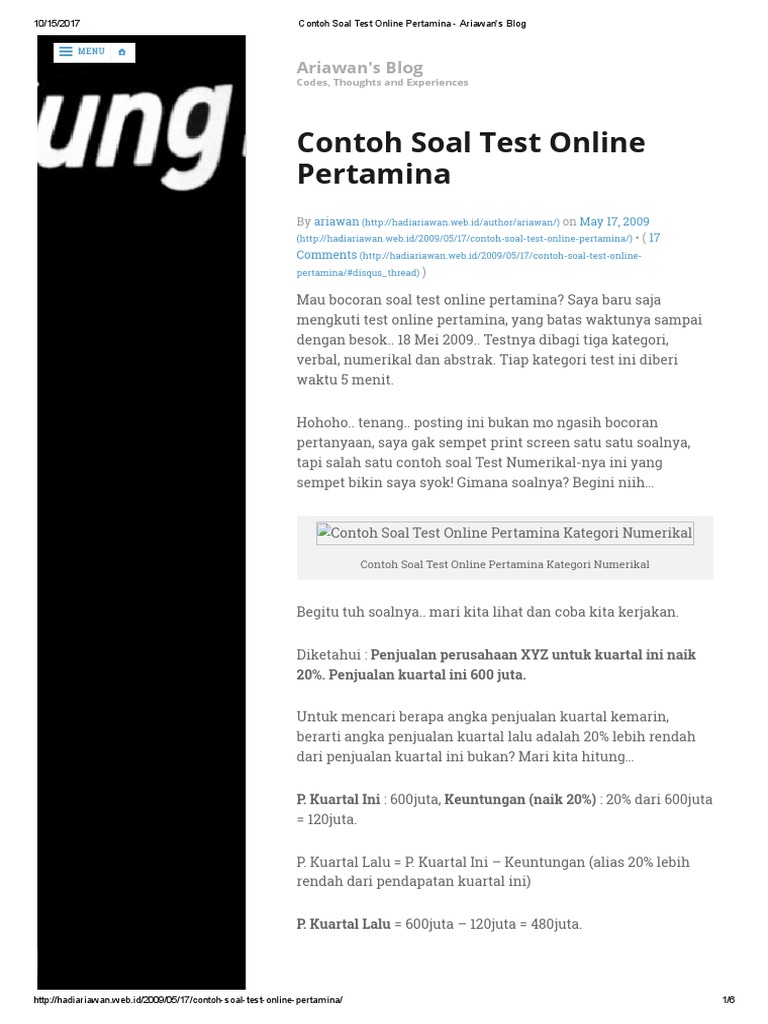 Dalam berbagai tes penerimaan rekrutmen yang diadakan oleh pt pertamina tidak pernah terlepas dari tes psikotes pertamina tes wawancara dan juga tes toefl pertamina tahun 2018. Contoh soal psikotes dan kunci jawaban terlengkap dan terbaru berita lowongan kerja terbaru februari 2017 info bumn 2017 dan cpns 2017 contoh gat646548030docx download now. Download contoh soal psikotes 2019 matematika gambar polri bank karayawan deret angka pdf cpns sma online dan jawabannya beserta pembahasannya lengkap. Tes psikotes pertamina intinya gak beda jauh sama tes psikotes untuk calon pns. Contoh soal test potensi akademik tpa terbaru lengkap disertai dengan jawaban dan pembahasannya numerik logika verbal visual tips dan trik contoh soal tpa test potensi akademik. Solusi menjawab akurat soal psikotes dalam seleksi masuk diperusahaan bumn pt pertamina persero kami menyediakan contoh soal dan pembelajaran dalam menghadapi ujian tes masuk pertamina.