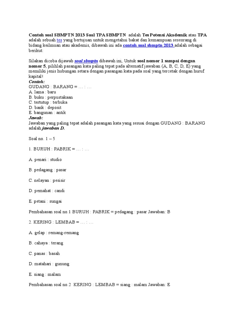 Latihan soal tes potensi akademik tpa kode soal. Simak di sini untuk persiapan daftar materi dan soal sbmptn utbk zenius education. Soal soal asli tpa tes potensi akademik. Belum tentu andrea memiliki hormon testosteron c.