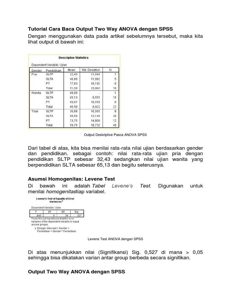 Pengertian dalam sebuah penelitian terkadang kita ingin membandingkan hasil perlakuan treatment pada sebuah populasi dengan populasi yang lain dengan metode uji hipothesis yang ada distribusi z chi kuadrat atau distribusi t. Setiap kriteria dalam pengujian anova mempunyal level. Contoh soal uji two way anova seorang peneliti ingin mengetahui apakah terdapat berbedaan hasil belajar siswa smp berdasarkan jenjang pendidikan terakhir orang tua dan jenis kelamin siswa tersebut. Jika anda belum memahami tentang uji anova anda bisa memahaminya disini. Chi square studi kasus. Uji anova dan contoh kasus anovaoke pada pos ini saya akan memaparkan satu contoh soal one way anova beserta pengujian dan interpretasinya menggunakan software statistik spss.