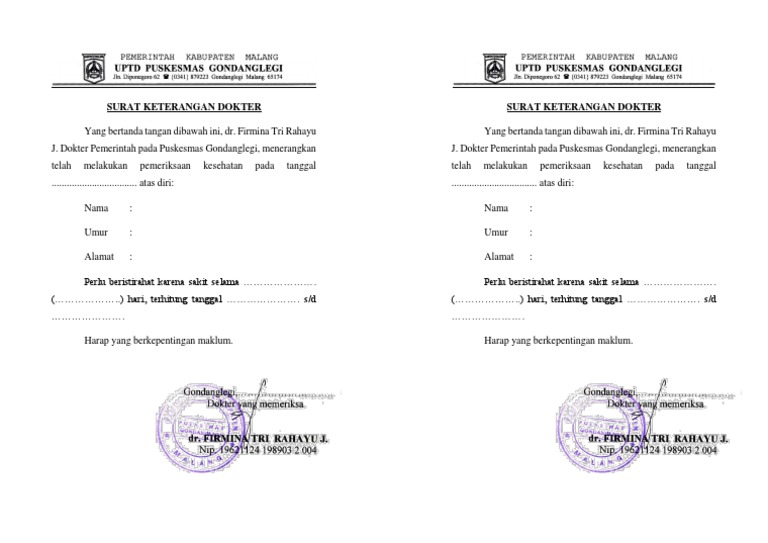 Contoh surat dokter puskesmas. Contoh surat keterangan sakit dari puskesmas. Contoh surat keterangan sakit dari puskesmas untuk pelajar january 27th 2018 surat keterangan surat keterangan sakit sangat dibutuhkan oleh pelajar yang tidak bisa masuk sekolah karena sakit. Adapun keperluan surat dokter biasanya dipergunakan oleh perseorangan atas nama pribadi dan untuk kepentingan pribadi. Contoh surat keterangan sakit dari dokter sebuah surat keterangan sakit sangatlah penting bagi seorang karyawan yang bekerja di perusahaan swasta maupun pegawai negeri. Anda bisa mendapatkan surat ini langsung ketika anda berobat ataupun beberapa hari setelah anda memeriksakan diri dengan mendatangi langsung puskesmas dan dokter pemeriksanya jika sakit anda belum kunjung sembuh. Namun surat dokter bukan hanya berisi keadaan sakit seseorang saja.