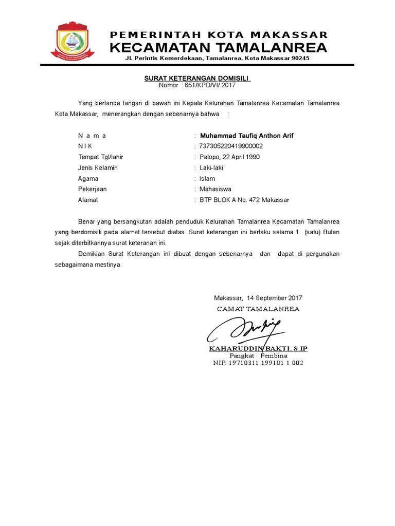 Doc Surat Ket Domisili La Ode Harudin Academia Edu