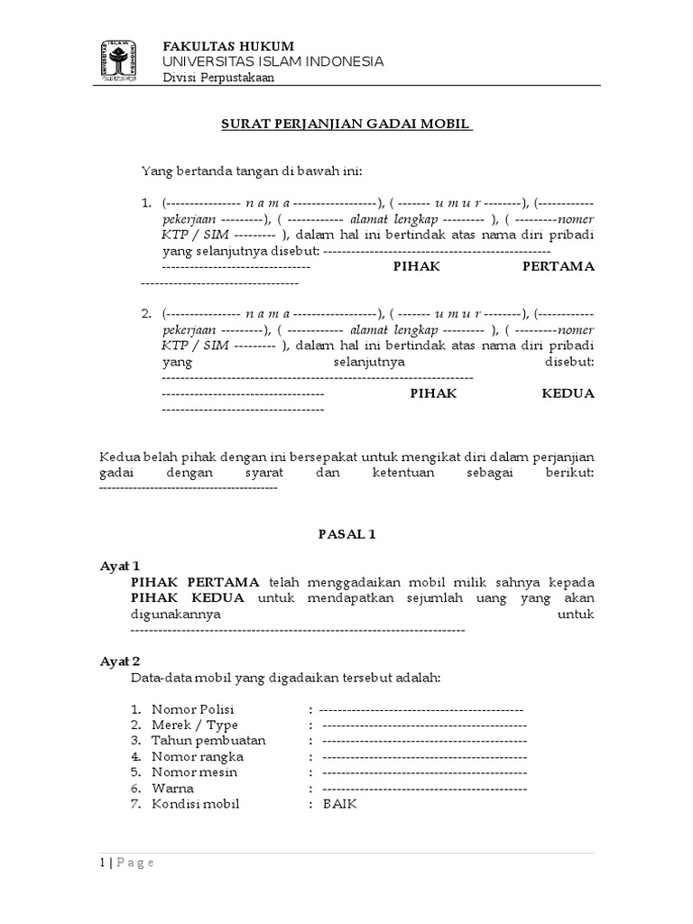 Berikut ini contoh surat perjanjian gadai sepeda motor lengkap dengan pasal pasal yang berisi seluruh ketentuan gadai dan mengikat pihak terkait. Namun pihak ketiga ini juga bisa bersifat optional. Perjanjian gadai mobil perjanjian ini dibuat pada hari tanggal bulan tahun antara. Jumat 06 mei 2011. Kumpulan contoh contoh surat lamaran kerja kontrak jual beli perjanjian kerjasama dan sebagainya. Contoh surat pernyataan gadai mobil assalamualaikum kali ini kami akan berbagi file microsoft word yaitu tentang surat pernyataan gadai mobil jika anda membutuhkan file ini anda bisa download di bawah ini tapi sebelumnya sebaiknya anda pelajari dulu cara membuatnya seperti apa nah ini adalah video kami panduan tentang cara membuat surat pernyataan gadai mobil.