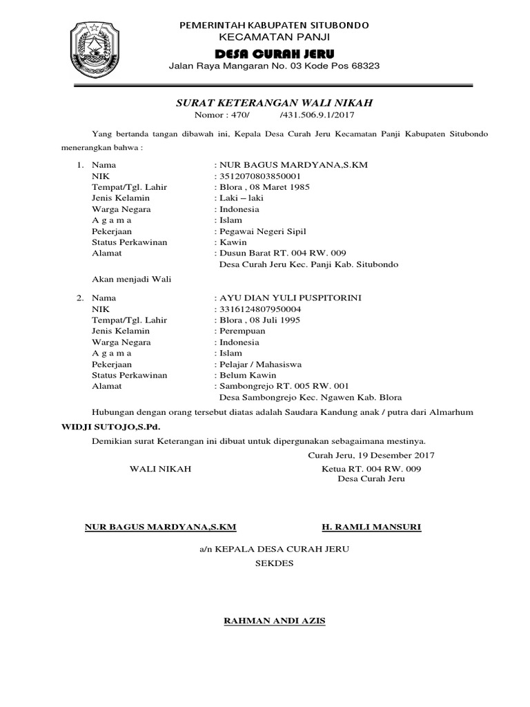 Contoh surat keterangan nikah dari kepala desa. Salah satu dokumen yang wajib untuk anda miliki sebagai bukti tambahan bahwa anda telah menikah selain adanya buku nikah. Contoh surat keterangan dari kelurahan kepala desa tentang nikah siri maraknya peristiwa nikah siri telah menjadi contoh yang banyak ditiru masyarakat kita baik yang tinggal di pedesaan maupun kelurahan kelurahan yang ada di kota besar nusantara indonesia dan atau juga untuk penghulu penghulu. Contoh surat pengantar nikah dari kelurahan. Contoh surat keterangan sakit dari rumah sakit. Jika salah satu dari kedua parameter tersebut belum terpenuhi maka pernikahan tersebut belumlah dapat diakui secara resmi di negara ini. Contoh surat pernyataan nikah siri yang benar dan sah pernikahan yang secara resmi dinyatakan di indonesia harus diakui secara hukum oleh agama dan negara.