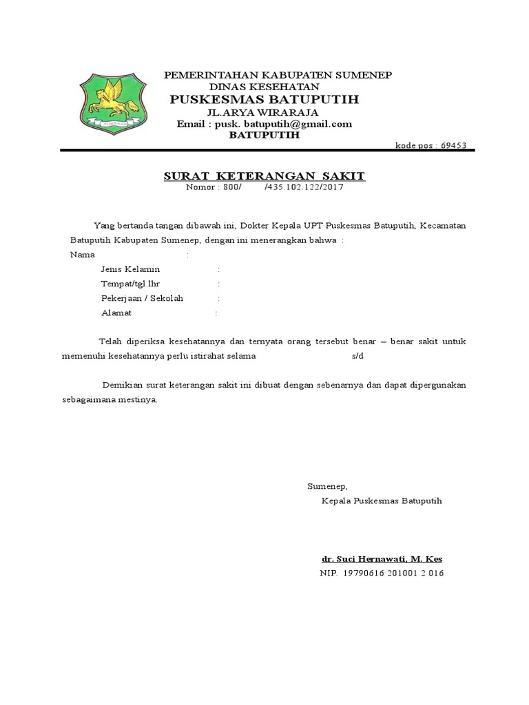 Surat keterangan sakit yang dikeluarkan oleh puskesmas biasanya dapat digunakan untuk instansi kecil dan menengah. Surat ini merupakan contoh dari surat resmi dimana penulisan dan penggunaan bahasa yang harus sesuai dengan ejaan yang disempurnakan. Nah saat anda berobat ke salah satu rumah sakit maka anda bisa meminta surat keterangan sakit dari pihak rumah sakit sebagai bukti bahwa anda memang benar benar sakit. Contoh surat keterangan sakit dari puskesmas. Pemerintah kota samarinda puskesmas sidodadi jl. Perlu admin beritahukan bahwa portal website kumpulan contoh surat berisi contoh surat bisnis surat dinas surat.