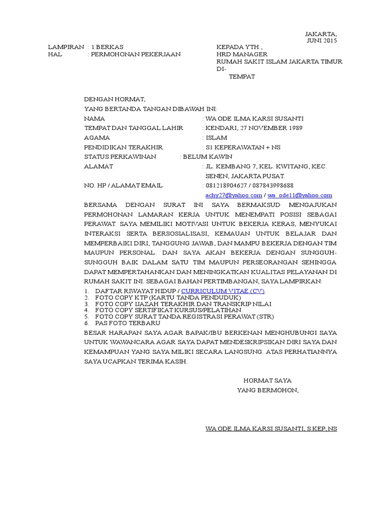 15 contoh surat lamaran kerja di rumah sakit berbagai posisi bekerja di suatu rumah sakit tentu merupakan impian yang sangat besar bagi seseorang. Surat lamaran kerja rumah sakit yogyakarta 11 maret 2010 perihal. Baik itu jurusan keperawatan jurusan kebidanan sampai dengan jurusan kedokteran. Contoh surat lamaran kerja di rumah sakit bagian administrasi. Contoh surat lamaran kerja di rumah sakit yang benar dan baik agar terlihat profesional sangat dibutuhkan untuk mendapatkan perhatian dari pihak terkait. Contoh surat lamaran kerja di rumah sakit tentunya sangat diperlukan bagi mereka yang berencana melamar pekerjaan di rumah sakit.