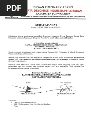 Menjadi anggota partai bisa menjadi tempat menyalurkan aspirasi kepada pemerintah. Boleh dibilang surat mandat ini mirip dengan surat perintah karana isinya sama sama memerintahkan karyawan untuk dapat menjalankan suatu perintah tugas untuk kepentingan perusahaan. Nomor rekening dpc gerindra kab. 62g2015ptun jkt tanggal 1 april 2015 dan surat dewan pimpinan pusat partai golkar nomor. Surat mandat termasuk jenis surat resmi sehingga diharapkan dalam pembuatan surat dapat menggunakan bahasa yang baku dan sopan selain itu diharapkan dapat mencatumkan informasi secara detail terkait orang yang diberikan mandat dan jenis kegiatan yang akan diikuti sehingga penugasan dapat dengan jelas dipahami. Demikian surat mandat ini saya buat dengan sebenar benarnya untuk digunakan seperlunya dan penandatanganan surat mandat ini semua yang bersangkutan dalam keadaan sehat jasmani dan rohani.