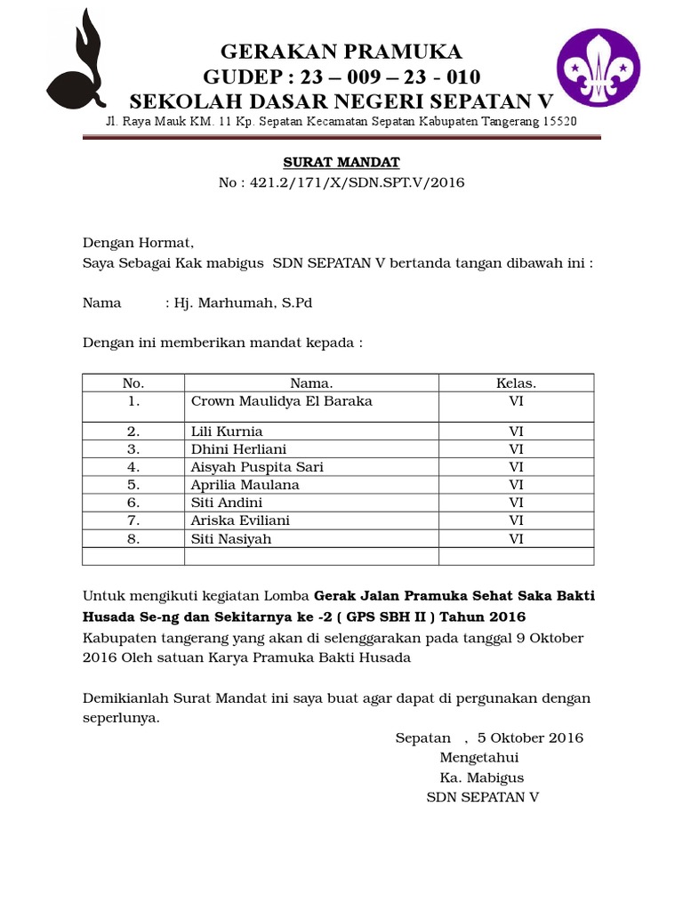 Contoh surat mandat pramuka. Contoh surat mandat pramuka. Eko widodo spd mpd. The collection that comprising chosen picture and the best amongst others. Home adm sekolah akreditasi download download contoh surat mandat gerakan pramuka. Contoh surat mandat dari berbagai instansi. Surat mandat kemah pramuka.