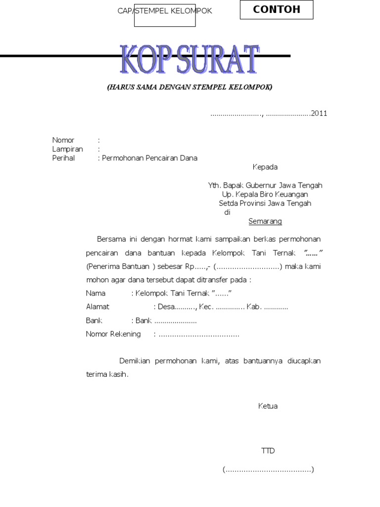 Contoh surat pencairan dana. Untuk mengatasi masalah sumber dana ini dapat dilakukan dengan iuran antaranggota. Contoh format surat permohonan pencairan dana kepada instansi pemerintahan liwa september 2006. Surat pengajuan dana merupakan salah satu contoh surat resmi yang berfungsi sebagai surat untuk mengajukan bantuan dana secara tertulis dari suatu instansi ataupun organisasi kepada orang banyak atau umum baik di dalam ruang lingkup tertentu atau masyarakat luas. Apa saja muatan secara umum dalam surat permohonan yang merupakan salah satu dokumen proposal pencairan anggaran desa tersebut. Aaop 2 oktober 16 2017. Contoh surat keterangan penerima pip dan surat kuasa pencairan kolektif di bank oleh kang noe 04 nov 2019 posting komentar penerima manfaat program indonesia pintar atau disingkat dengan pip merupakan siswa sekolah yang dengan kriteria khusus diberikan hak sebagai penerima bantuan dana untuk biaya pendidikannya.