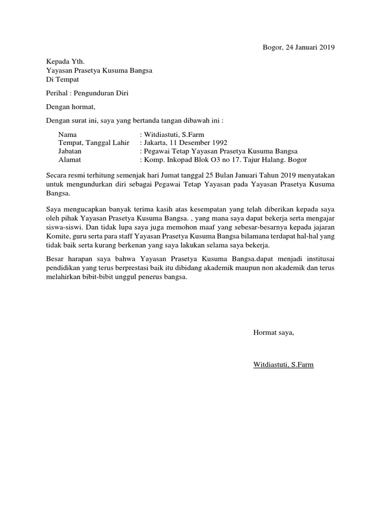 Tempat tanggal lahir. Kulon progo 28 september 2017. Menulis surat pengunduran diri dari sekolah sebagai siswamurid adalah hal yang sangat mudah. Kepala smk negeri 2 kulon progo jl. Jakarta 30 maret 1979 jabatan. Sebagai seorang guru mengundurkan diri dari pekerjaan adalah sebuah keputusan besar.