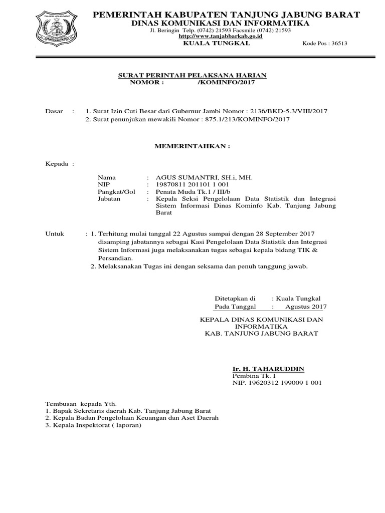 Contoh surat lengkap surat ijin surat lamaran kerja perintah resmi permohonan keterangan undangan dinas niaga jalan dukungan pengantar. Berkenaan dengan banyaknya pertanyaan mengenai kewenangan pelaksana harian dan pelaksana tugas serta dengan berlakunya undang undang nomor 30 tahun 2014 tentang administrasi pemerintahan yang antara lain mengatur mengenai kewenangan pelaksana harian dan pelaksana tugas maka surat kepala badan kepegawaian negara nomor k26 2on 24 25199 tanggal 10 desember tahun 2001 perihal tata cara. Lalu yang saya tanyakan dimana letak perbedaan antara keduanya. Penunjukan admin unit kerja laporan harta kekayaan penyelenggara. Hasil penelusuran untuk contoh surat penunjukan pelaksana tugas harian. Surat perintah pelaksanan tugas.