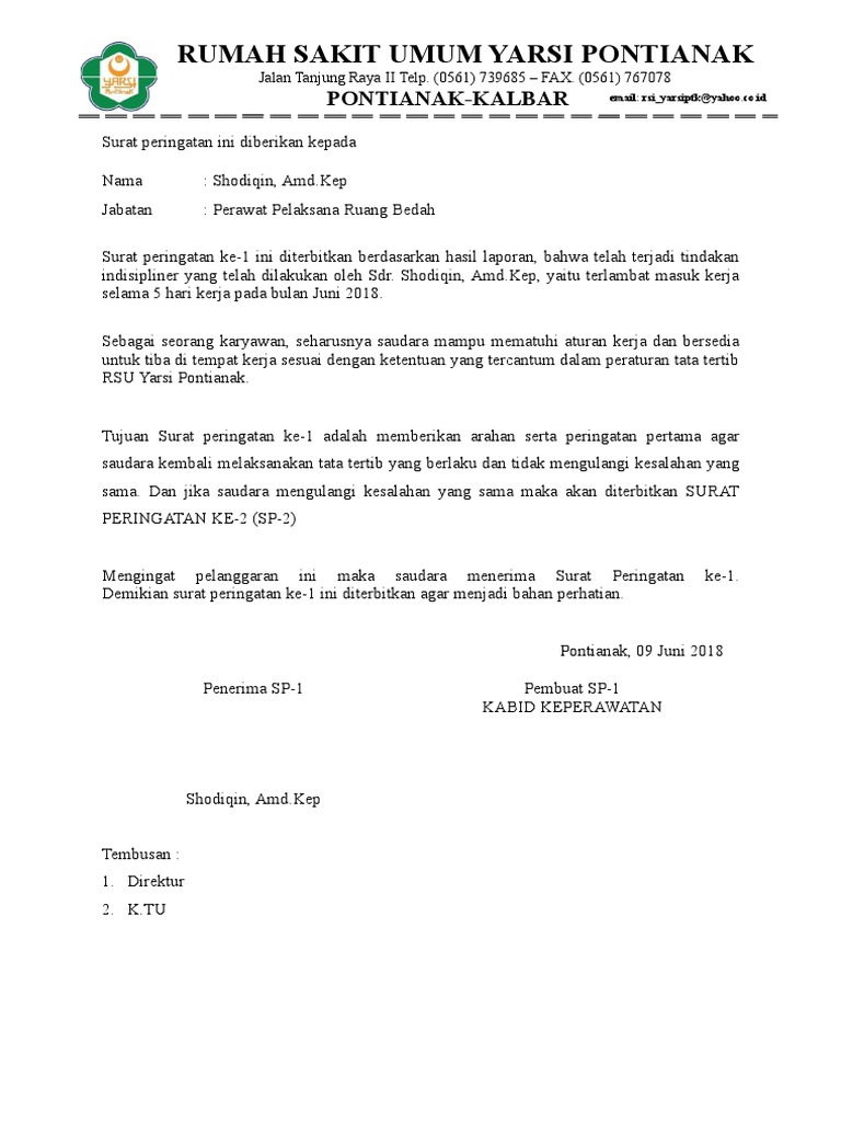 Nah itu tadi penjelasan singkat tentang contoh surat peringatan 1. Contoh surat teguran kecanggihan teknologi sekarang ini memang sudah semakin canggih dan semua komunikasi bisa dilakukan melalui internet. Contoh surat peringatan karyawan sebagai teguran tertulis bagi karyawan yang telah menyalahi melanggar ketentuan atau peraturan yang berlaku di perusahaan pihak perusahaan berhak untuk mengeluarkan surat teguran yang berbentuk surat peringatan sp1 sp2 sp3 sesuai dengan tingkatan kesalahan yang telah dilakukan. Begitu pula dalam hal pekerjaan teguran dalam pekerjaan bisa bermakna baik dan buruk. Teguran baik adalah teguran yang disampaikan dengan maksud menyapa seseorang. Sekian dulu dan terima kasih telah setia membaca artikel dari kami.
