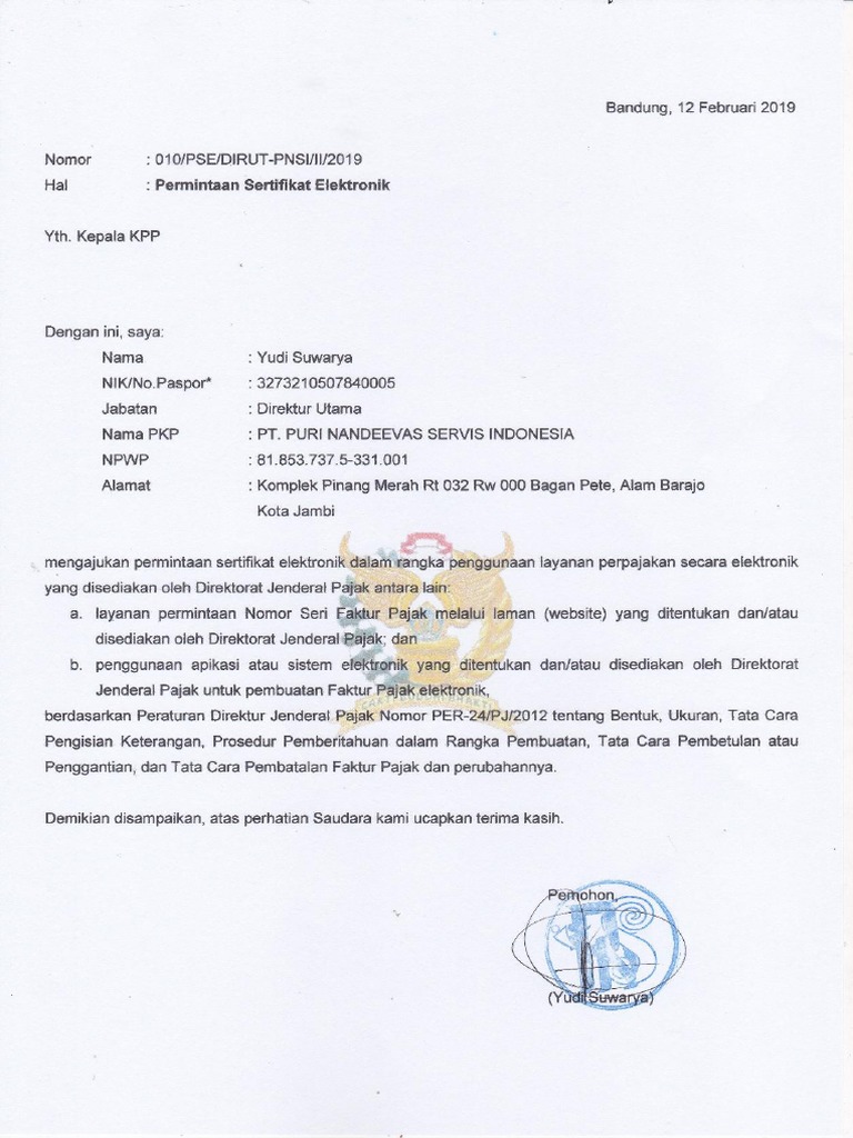 Contoh surat permohonan pengurusan tanah diposting oleh aburasyid on senin 10 juli 2017 dalam pengurusan kepemilikan tanah maka ada beberapa macam contoh surat yang dibutuhkan berikut ini kami tampilkan formulir contoh surat permohonan pengurusan tanah kepada lembaga terkait. Balai riset dan standardisasi industri samarinda. 99 cibinong bogor no. Pemberi kuasa dengan ini memberikan kuasa kepada. Sesuai namanya surat permintaan sertifikat elektronik merupakan surat permohonan yang diajukan oleh pengusaha kena pajak pkp kepada kantor pelayanan pajak kpp untuk meminta sertifikat elektronik pajak. Contoh surat permohonan penerbitan sertifikat bpjs baba jihan.