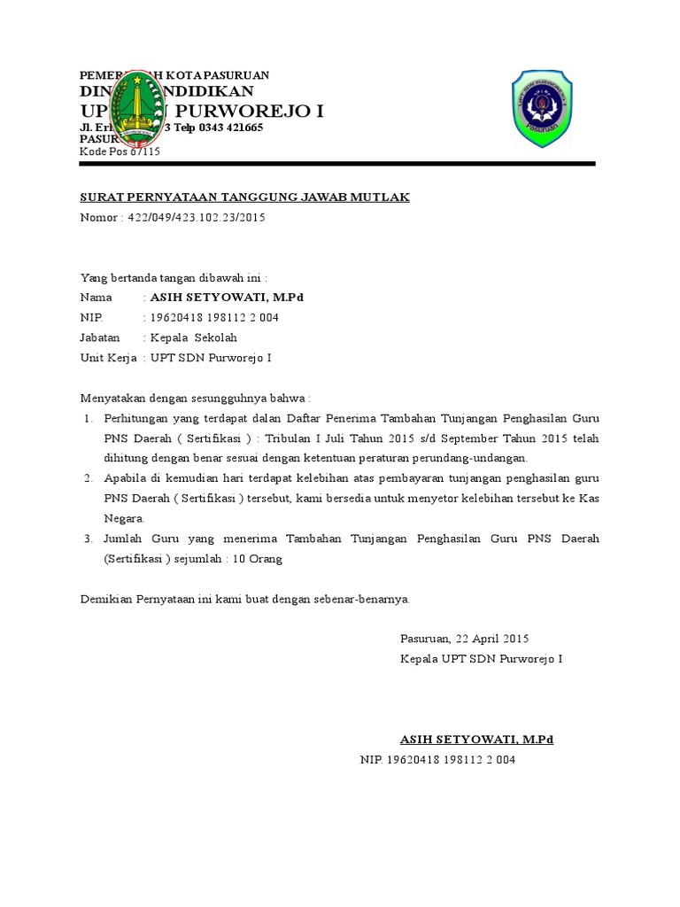 Contoh surat pertanggung jawaban. Contoh surat pernyataan pertanggung jawaban. Contoh surat pernyataan secara umum surat pernyataan merupakan jenis surat yang dibuat oleh individu yang menyatakan dirinya atau dibuat untuk orang lain yang pernah atau tidak pernah melakukan sesuatu. Pejabat perusahaan tersebut bisa jadi mempunyai jabatan sebagai seorang operator supervisor kepala bagian kepala cabang manajer general manager ceo direktur dan lain sebagainya. Untuk itu kali ini admin wongcungkup akan memberikan contoh membuat surat pernyataan pertanggung jawaban seperti dibawah ini. Sebelum admin bagikan contoh surat terbaru admin ingatkan lagi bahwa pada postingan sebelumnya admin sudah membagikan contoh surat pernyataan kesanggupan untuk kontrak. Salah satu syaratnya adalah menulis kata pengantar proposal yang baik dan surat pertanggungjawaban.