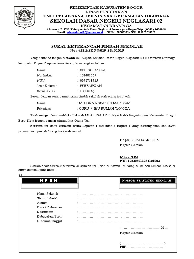 Yang akan kita bahas kali ini adalah contoh surat rekomendasi untuk memindahkan tugas khusus untuk kita profesi sebagai guru pns. Contoh surat permohonan mutasi siswa dari orang tua. Jika anda bekerja sebagai seorang pns seperti menjadi seorang guru maka tentu saja anda tidak bisa mutasi atau pindah tugas ke sekolah lain dengan bebas. Dalam hal ini surat dibuat oleh permintaan orang tua peserta didik yang menginginkan anak didiknya pindah ke sekolah lain atau berupa keterangan pengajuan pindah sekolah. Surat pindah sekolah adalah surat yang dibuatdikeluarkan oleh pihak berwenang dalam hal ini pihak sekolah untuk menerangkan bahwa siswa yang bersangkutan tidak lagi bersekolah di sekolah tersebut dan telah pindah ke sekolah baru yang dituju. Memang tidak ada ketentuan baku tentang format contoh surat keterangan pindah sekolah mutasi siswa antar madrasah.