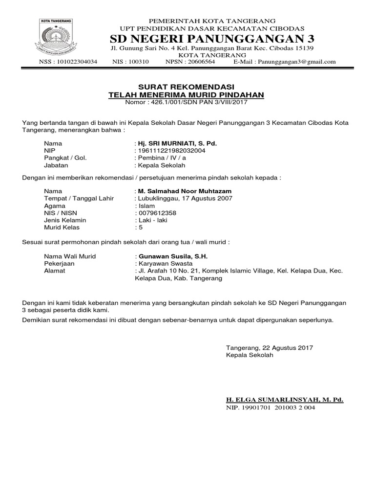 Contoh surat rekomendasi pindah sekolah. Baik surat permohonan pindah dari orang tua siswa surat keterangan pindah sekolah dari madrasah asal maupun surat keterangan telah menerima siswa pindahan. Kerangka penulisan surat rekomendasi sekolah pun tidak jauh berbeda dengan beberapa rekomendasi lainnya dimana harus terdapat kepalakop surat nomor surat pihak yang merekomendasikan pihak yang direkomendasikan dan isi rekomendasi serta penutup dan tanggal pembuatan surat tersebut. Perpindahan tugas pns tidak bisa dilakukan oleh kepala instansi ataupun kepala skpd. Contoh surat rekomendasi pindah tugas. 17 contoh surat pribadi untuk kakak teman sahabat orang tua guru 40 contoh kartu nama dengan berbagai desain yang menarik macam macam surat pembaca beserta contohnya di lingkungan pendidikan 15 contoh cv curriculum vitae daftar riwayat hidup terlengkap terbaru 23 contoh brosur dan flyer makanan produk promosi iklan sekolah contoh undangan aqiqah untuk buah hati tercinta anda. Namun jika seorang pns mengutarakan maksud untuk pindah tugas maka pimpinan skpd bisa memberikan rekomendasi agar pihak bersangkutan mempermudah dan menyetujui perpindahan tugas anggota pns dimaksud.
