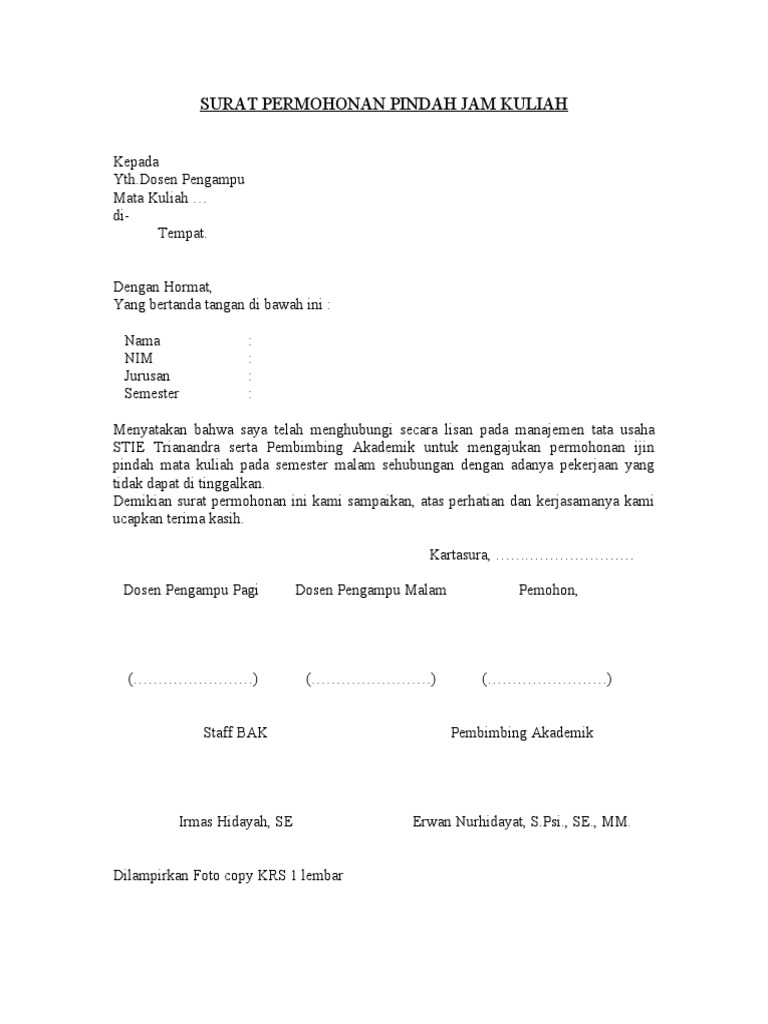 Berikut ini mengenai contoh surat izin tidak masuk kuliah terlengkap. Karena pada artikel contoh surat izin tidak masuk kuliah ini akan kita bahas secara tuntas bagaimana menyusun suatu surat izin tidak masuk kuliah yang baik dan benar termasuk hal hal penting. Contoh surat izin tidak masuk untuk dosen. 15 contoh surat tugas resmi yang baik dan paling lengkap salah satu jenis surat yang sangat sering digunakan oleh perusahaan maupun instansi tertentu adalah surat tugas. Naah berikut ini kami berikan contoh surat izin kuliah untuk dosen mata kuliah. Karena sebagian dosen ada yang tidak mau menerima alasan izin selain sakit yang harus disertai surat keterangan dokter.