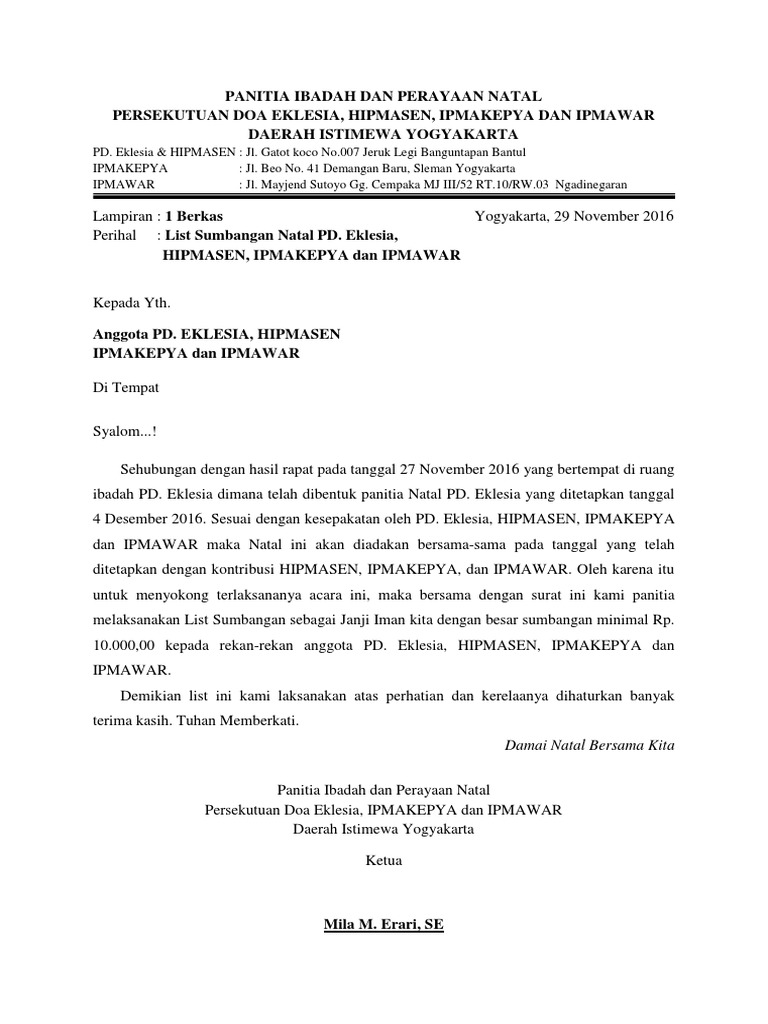 Contoh surat sumbangan sukarela. Dalam bentuknya jika disebutkan secara lisan pernyataan sulit untuk dapat dibuktikan kecuali bila ada saksi. Contoh surat mohon sumbangan barang have a graphic associated with the othercontoh surat mohon sumbangan barang in addition it will include a picture of a sort that could be seen in the gallery of contoh surat mohon sumbangan barang. Surat edaran merupakan salah satu contoh surat resmi yang berfungsi sebagai surat pemberitahuan suatu berita atau informasi secara tertulis dari suatu instansi ataupun organisasi kepada orang banyak umum baik di dalam ruang lingkup tertentu atau masyarakat luas serta sifatnya tidak rahasia. Hj ayob bin abu seman a14kg ulu sena06740 kuala nerangkedah. Untuk surat permohonan lainnya format yang digunakan hampir sama hanya berbeda pada isi dari tujuan surat permohonan tersebut. Tuan pegawai hj non hanifah bin hj adam kg batu hampar lorong jawa 01455 simpang kuala alor star kedah.