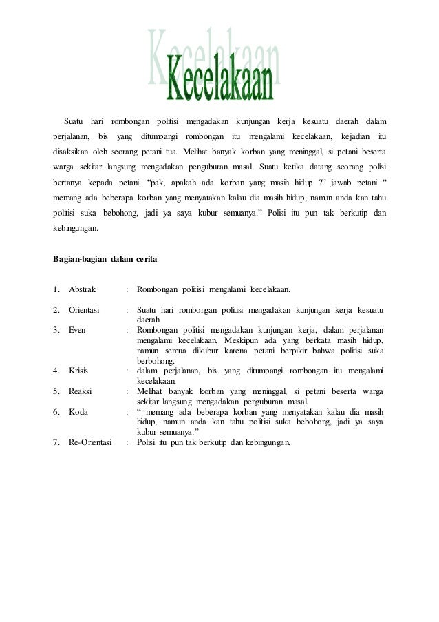 Pada suatu malam hari yang mencekam ada kakek kakek tunawisma yang berjalan di jalan yang sepi dan akan menyebrang jalan. Dalam artikel ini kita akan mengulas tentang pengertian teks anekdot struktur anekdot kaidah teks anekdot dan ciri ciri teks anekdot. Biasanya hal yang diceritakan adalah tokoh nyata atau peristiwa nyata yang ditulis sedemikian rupa agar menarik dan lucu. Teks tersebut singkat tapi kelucuannya dapet banget sehingga saya sangat suka dengan lelucon yang seperti itu. Selain itu untuk mempermudah kamu mengetahui apa itu teks anekdot kita juga memberikan beberapa contoh teks anekdot lucu beserta strukturnya. Sosial hukum panjang beserta strukturnya tentang lingkungan menyindir teman tentang politik dalam kehidupan sehari hari dialog hukum peradilan bahasa jawa politisi blusukan banjir.
