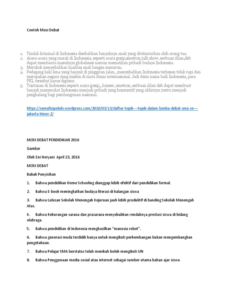 Contoh teks debat tentang internet. Semoga dapat bermanfaat dan menambah wawasan. Salah satu manfaatnya adalah masyarakat bisa mengakses informasi dengan mudah. Bahasa indonesia yang dapat dijadikan sebagai referensi. By ahmad arifin posted on april 24 2020 april 24 2020. Contoh teks debat tindak kriminal dan kekerasan yang ditayangkan di televisi merusak karakter bangsa keterangan abc pro 123 kontra. Demikian sedikit informasi mengenai 7 contoh teks debat lengkap.