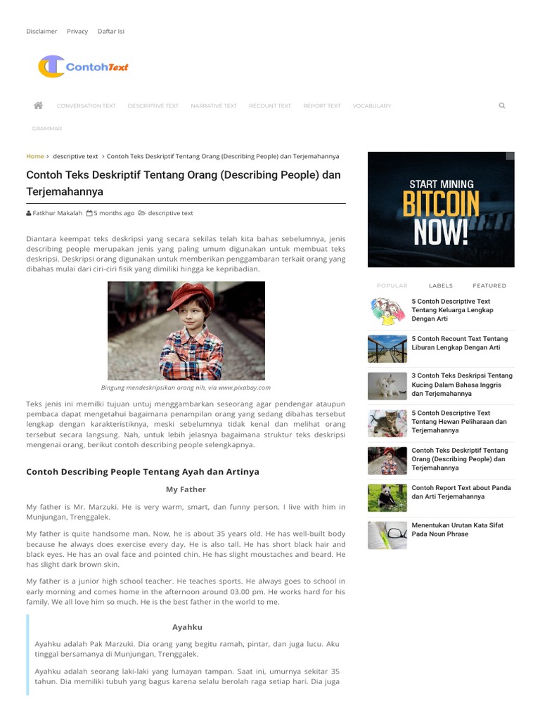 Semua jenis teks tersebut memiliki ciri ciri kaidah penulisan fungsi dan cara membuat yang berbeda beda. I have a pet cat. Saat tara lapar dia akan mengeong meminta makan. Contoh teks deskripsi terdapat berbagai jenis teks yang sering kita jumpai seperti narasi prosedur eksposisi laporan dan deskripsi. Contoh teks deskripsi dalam bahasa indonesia. Contohtext kali ini memberikan teks deskripsi tentang hewan beberapa hewan yang ada pada descriptive text berikut yakni anjing kucing burung ikan dan kelinci.