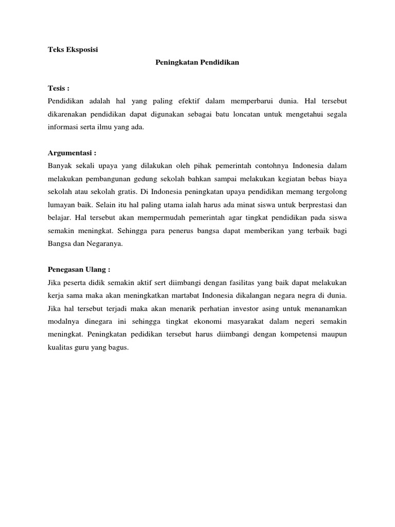Salah satu jenis teks yang paling sering ditemukan di media media berbasis tulisan adalah contoh teks eksposisi tentang pendidikan. Sebenarnya apa itu pendidikan.