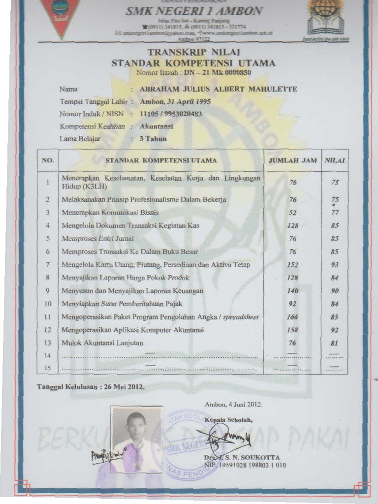 Format transkrip nilai smk 2014 un 2014. Diaplikasi ini bisa untuk menambah mengurangi atau meng edit nama nama mapel baik na atau produktif sesuai dengan struktur kurikulum masing2 jurusan. Untuk smk transkrip nilai adalah kumpulan nilai mata pelajaran dari smk kelas satu atau semester 1 hingga kelas 3 atau semester 6. 1 1 mendukung tandai dokumen ini sebagai bermanfaat 0 0 menolak tandai dokumen ini sebagai tidak bermanfaat tanamkan. Karusel sebelumnya karusel berikutnya. Proposal ruang praktik alhusna betul.